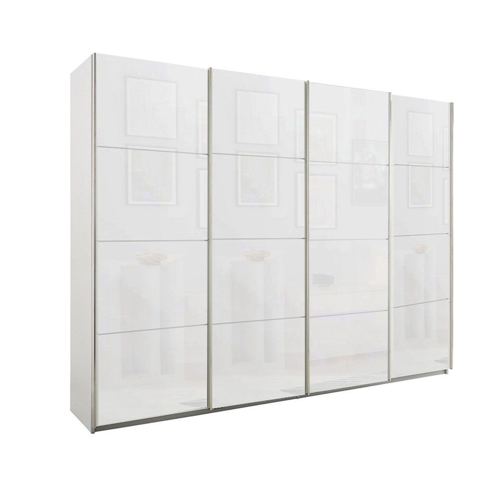 Beluga Extra Sliding Wardrobe - 271cm - 4 Door - Alpine White & White Glass