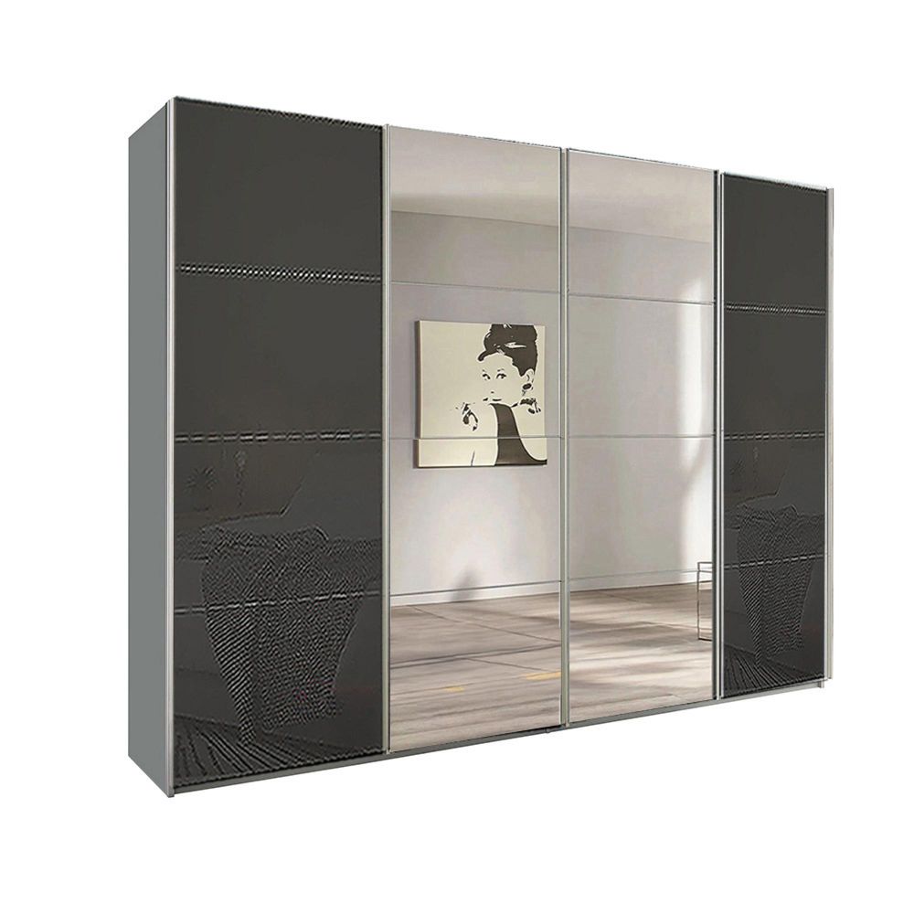 Beluga Extra Sliding Wardrobe - 271cm - 4 Door - Mirror - Silk Grey & Basalt Glass