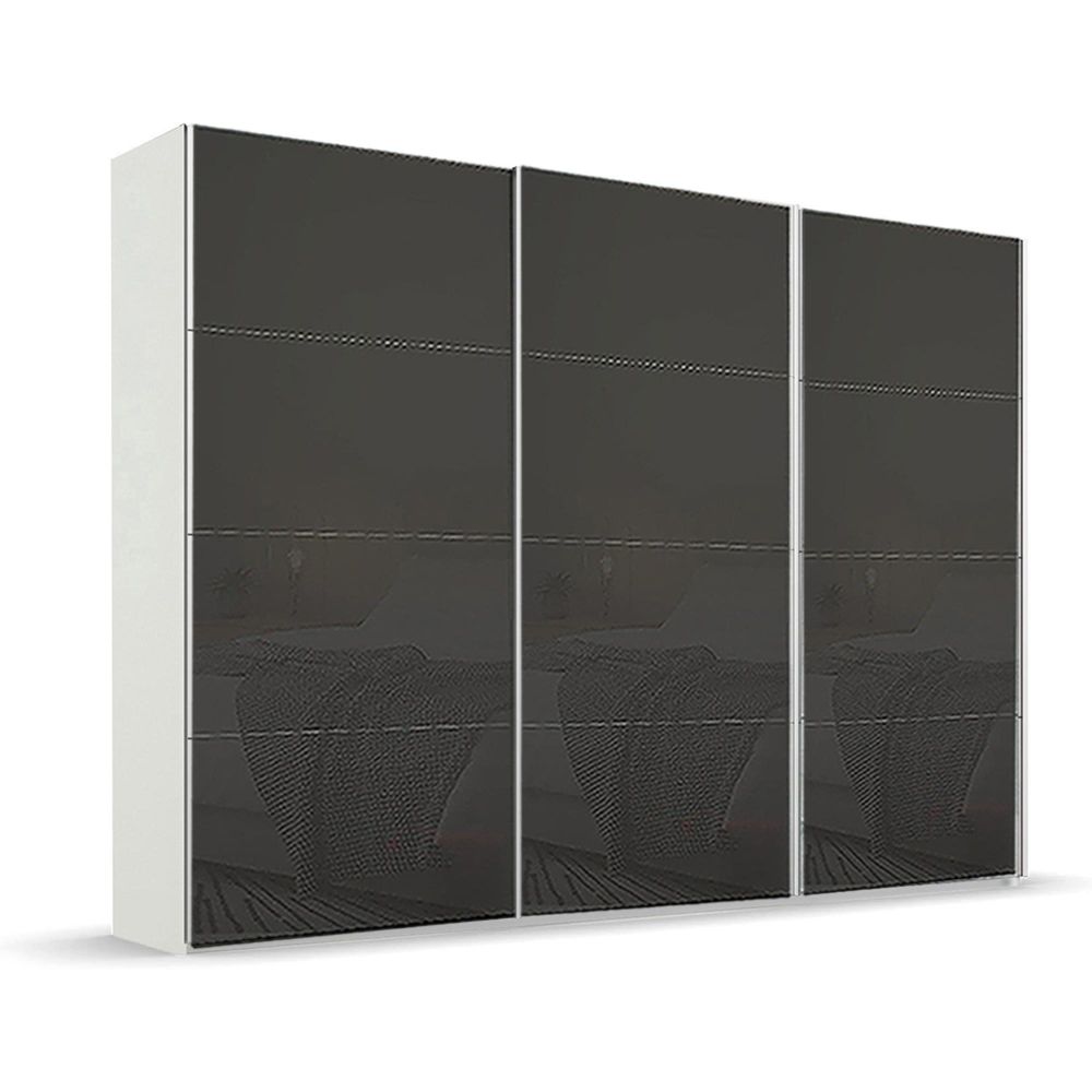 Beluga Extra Sliding Wardrobe - 316cm - 3 Door - Alpine White & Basalt Glass