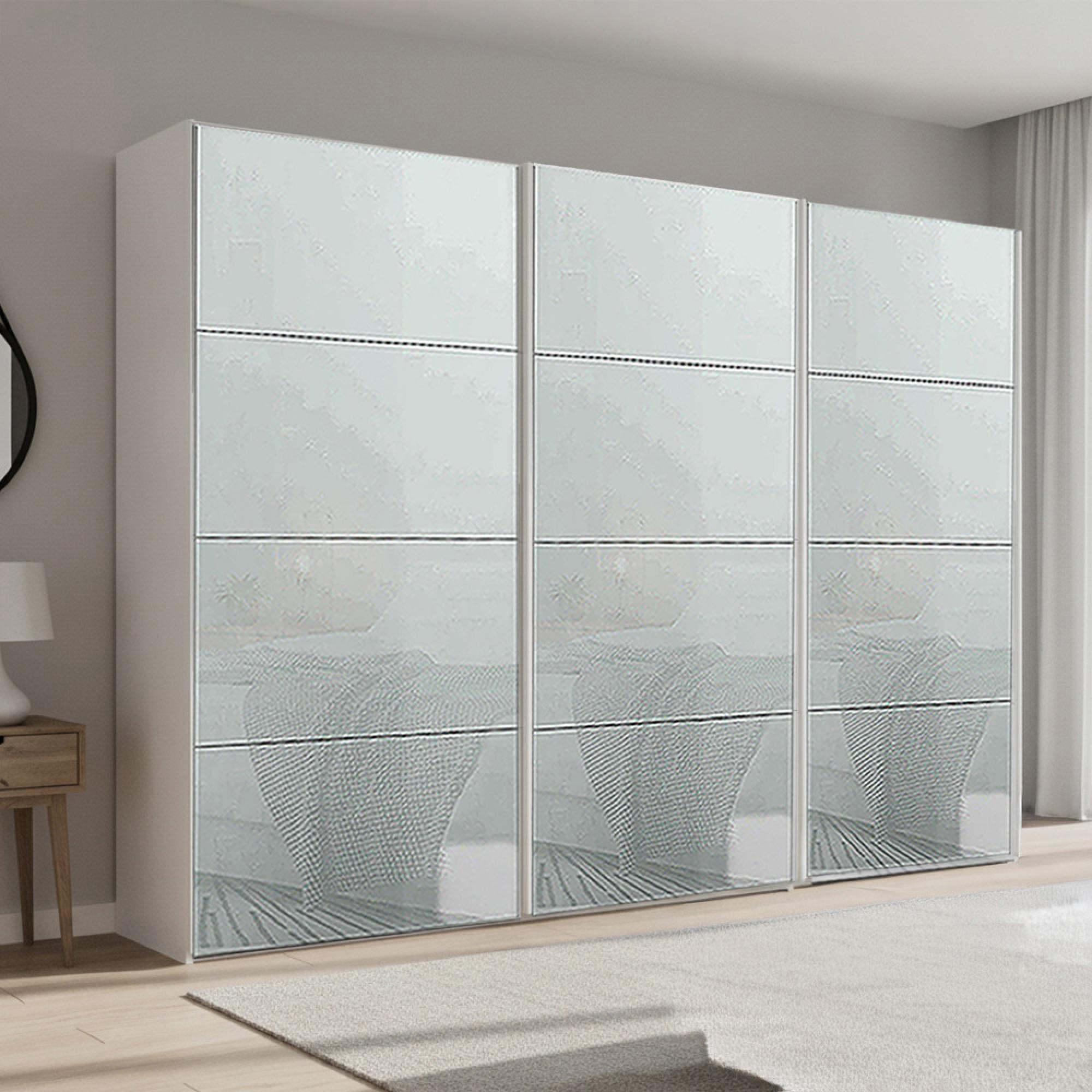 Beluga Extra Sliding Wardrobe - 316cm - 3 Door - Alpine White & Silk Grey Glass