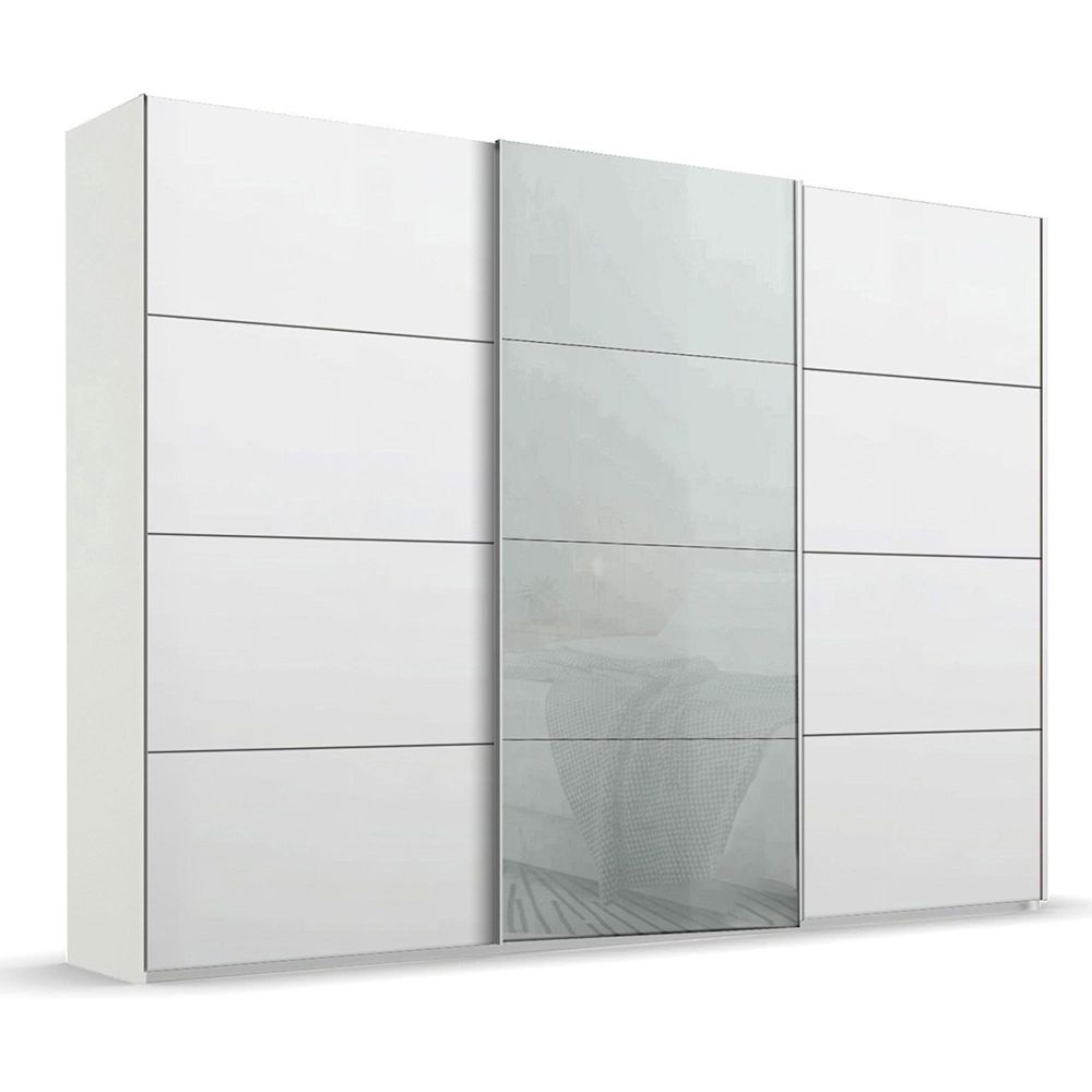 Beluga Extra Sliding Wardrobe - 316cm - 3 Door - Alpine White & Silk Grey Glass Front