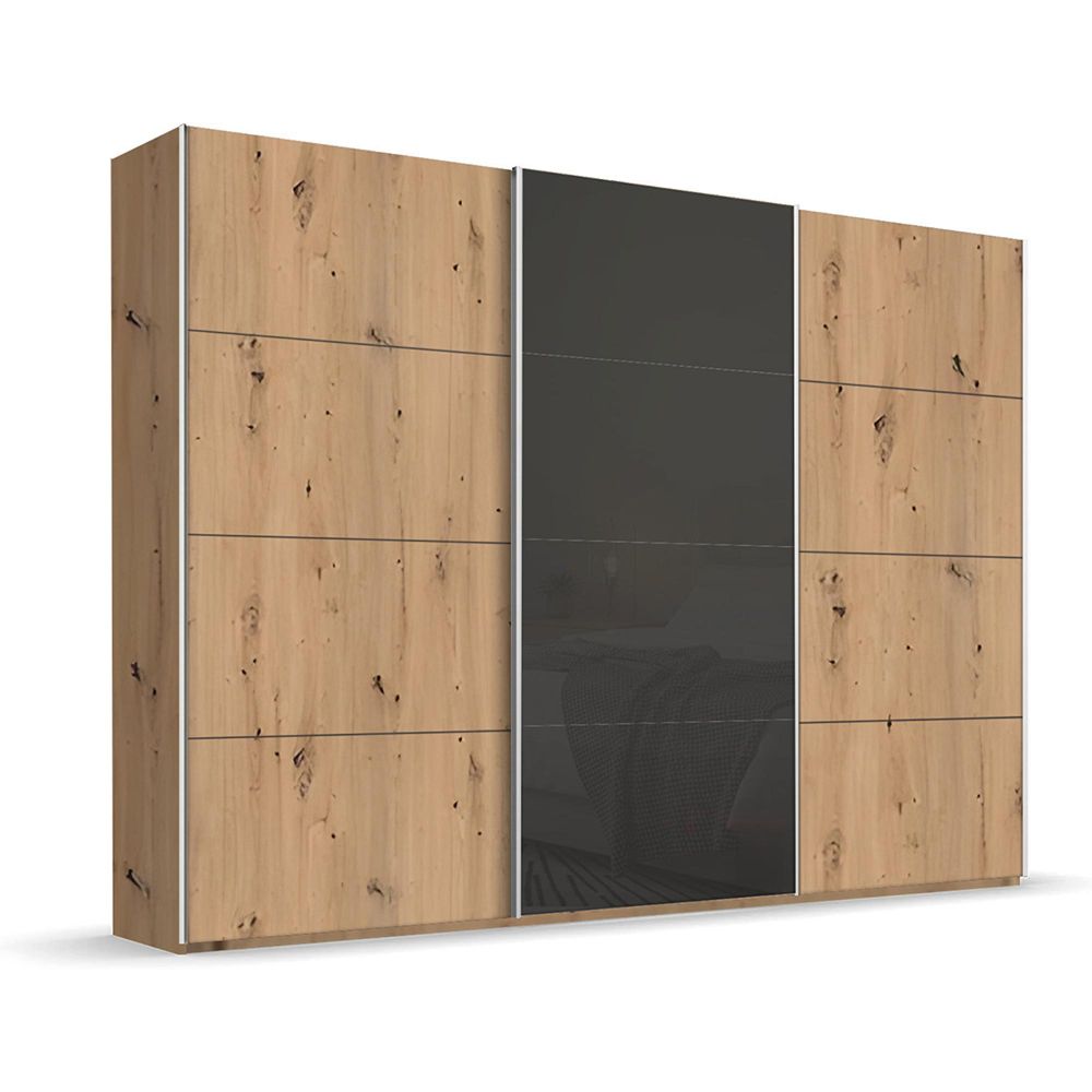 Beluga Extra Sliding Wardrobe - 316cm - 3 Door - Artisan Oak & Basalt Glass Front