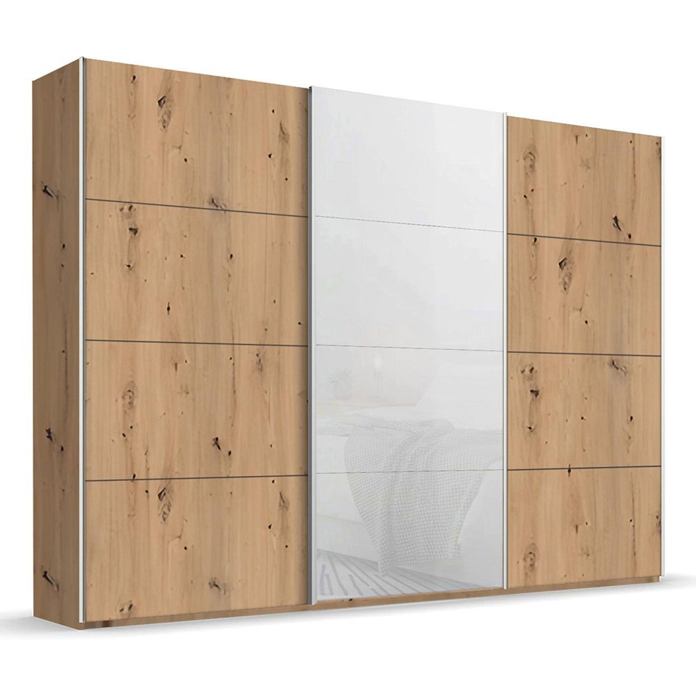 Beluga Extra Sliding Wardrobe - 316cm - 3 Door - Artisan Oak & White Glass Front