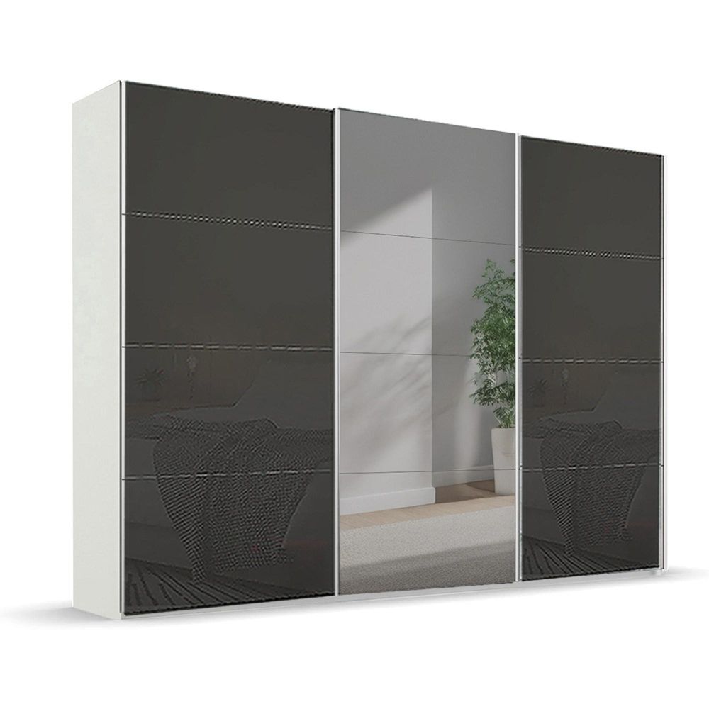 Beluga Extra Sliding Wardrobe - 316cm - 3 Door - Mirror - Alpine White & Basalt Glass