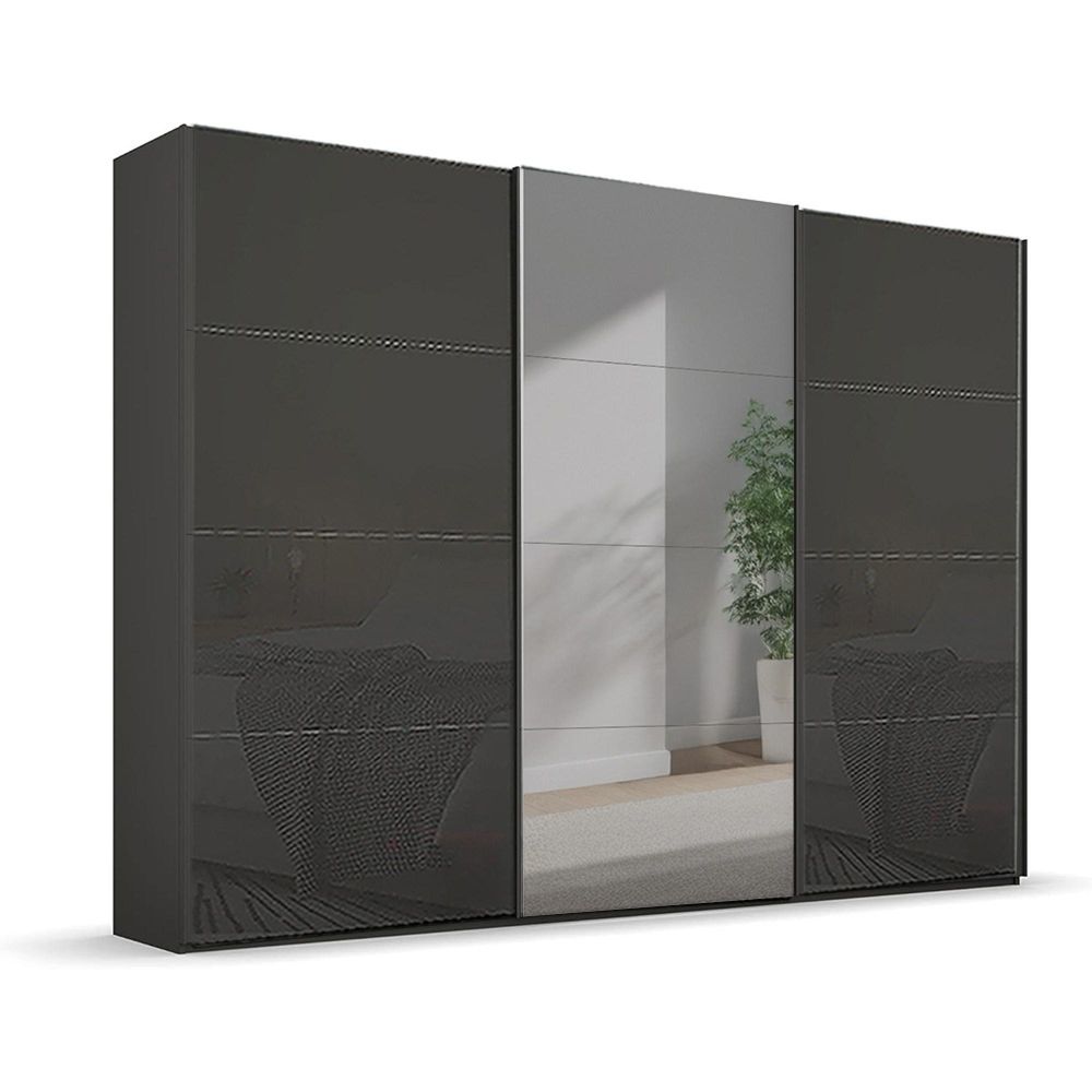 Beluga Extra Sliding Wardrobe - 316cm - 3 Door - Mirror - Graphite & Basalt Glass