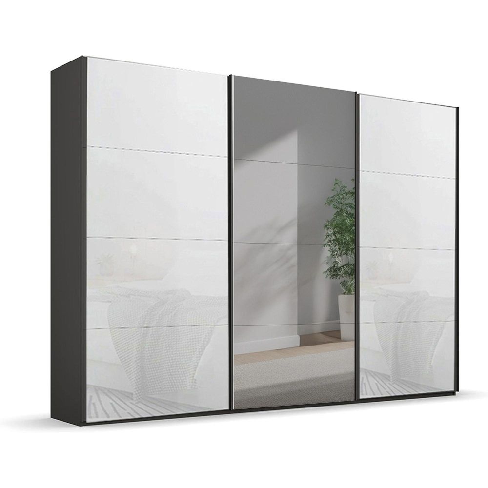 Beluga Extra Sliding Wardrobe - 316cm - 3 Door - Mirror - Graphite & White Glass