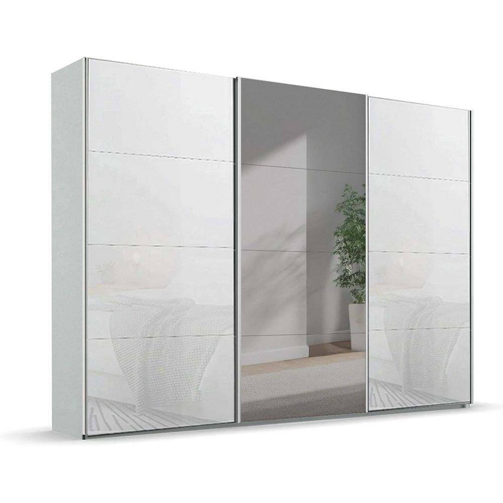 Beluga Extra Sliding Wardrobe - 316cm - 3 Door - Mirror - Silk Grey & White Glass