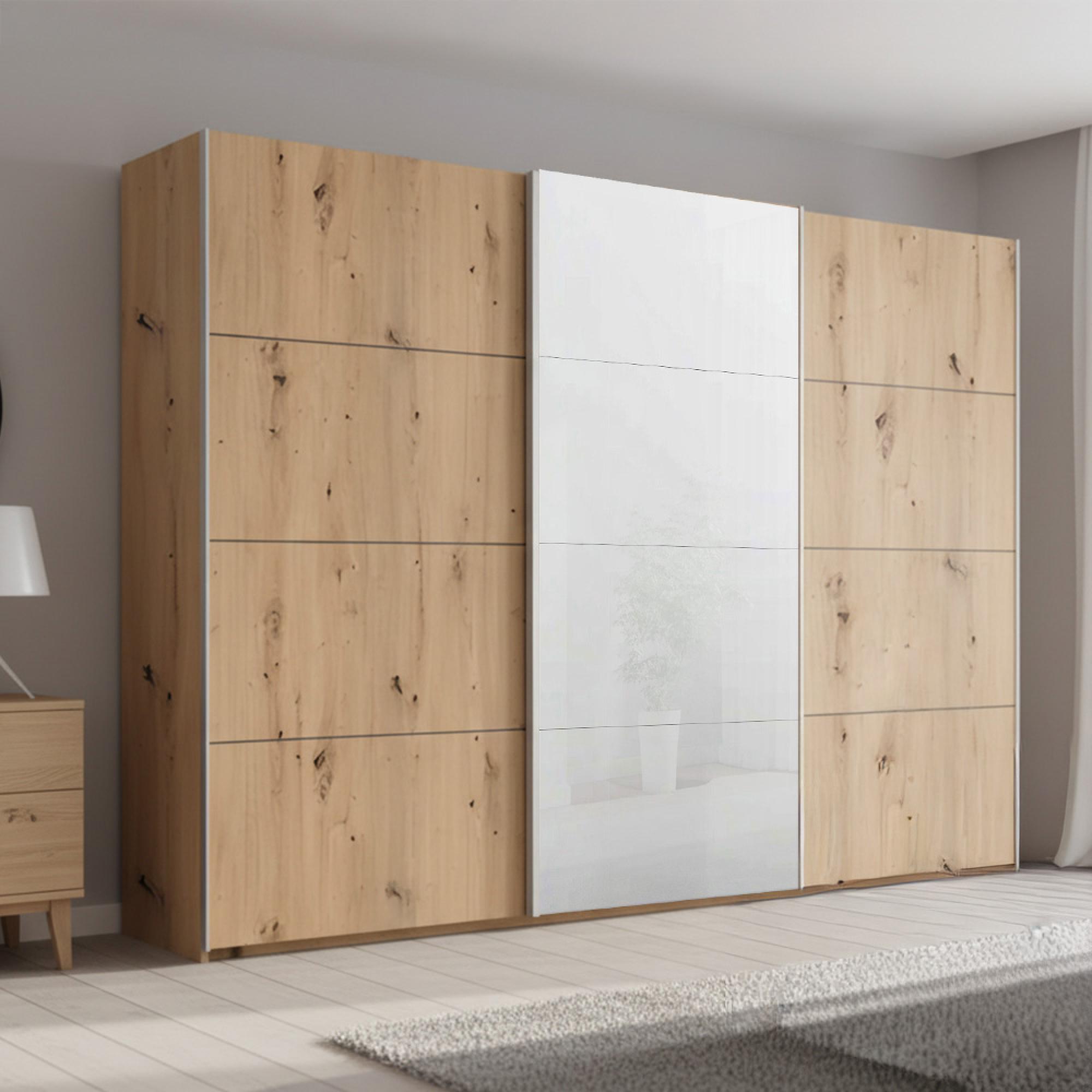 Beluga Extra Sliding Wardrobe - 316cm - 3 Door - White High Gloss & Artisan Oak Front