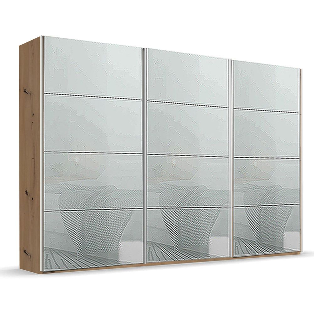 Beluga Extra Sliding Wardrobe - 361cm - 3 Door - Artisan Oak & Silk Grey Glass