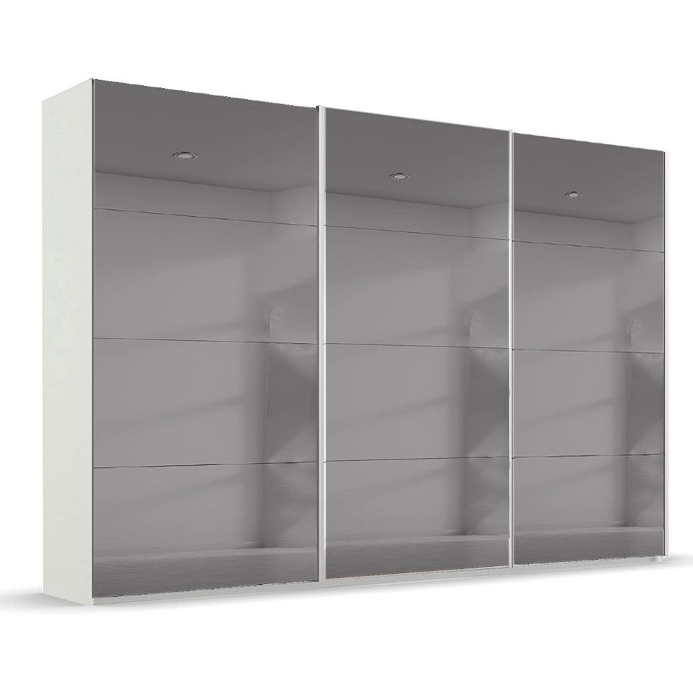 Beluga Extra Sliding Wardrobe - 361cm - 3 Door - Grey Mirrored - Alpine White