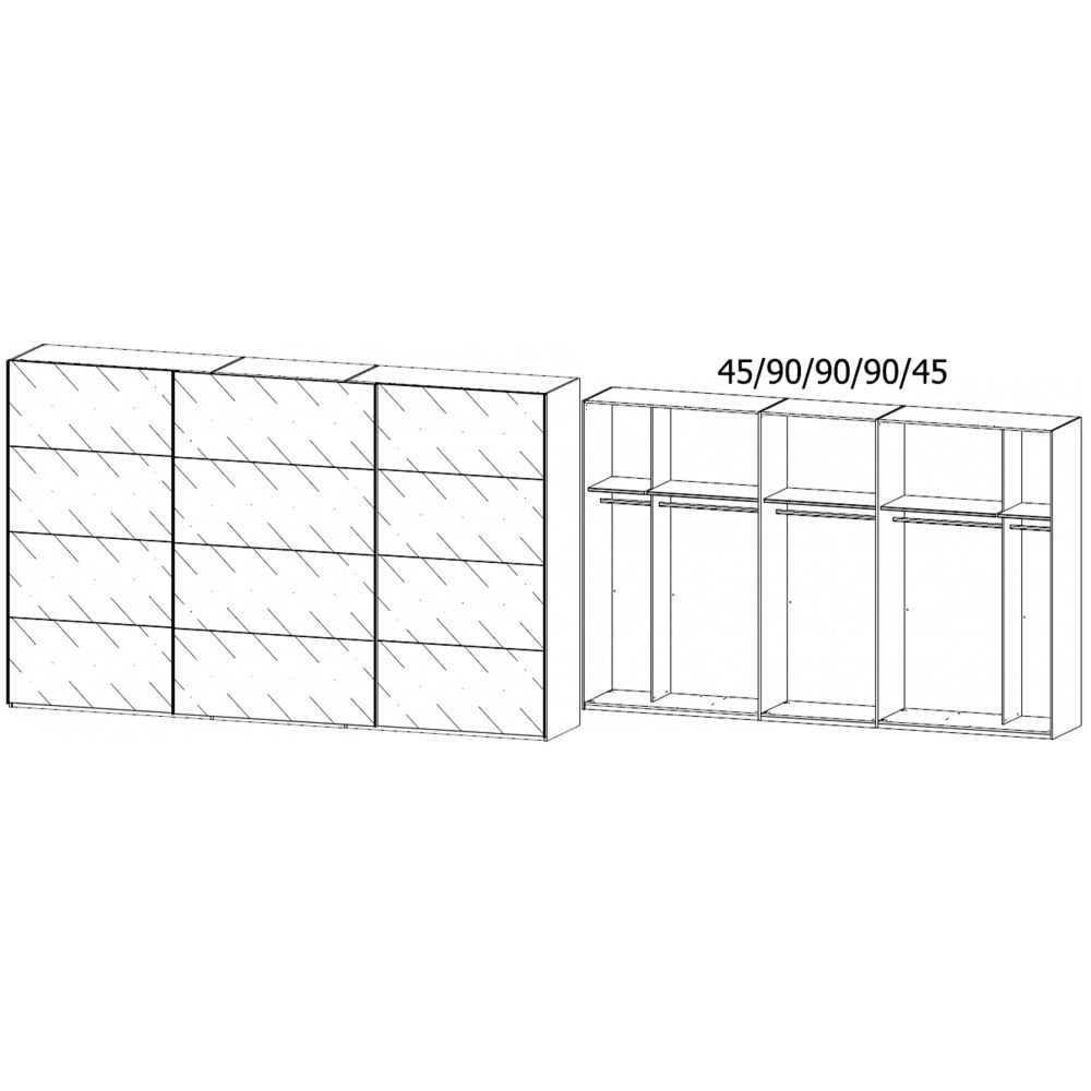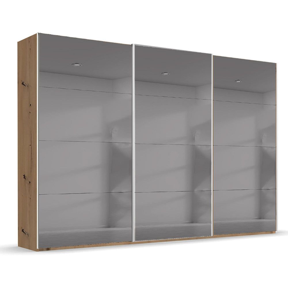 Beluga Extra Sliding Wardrobe - 361cm - 3 Door - Grey Mirrored - Artisan Oak