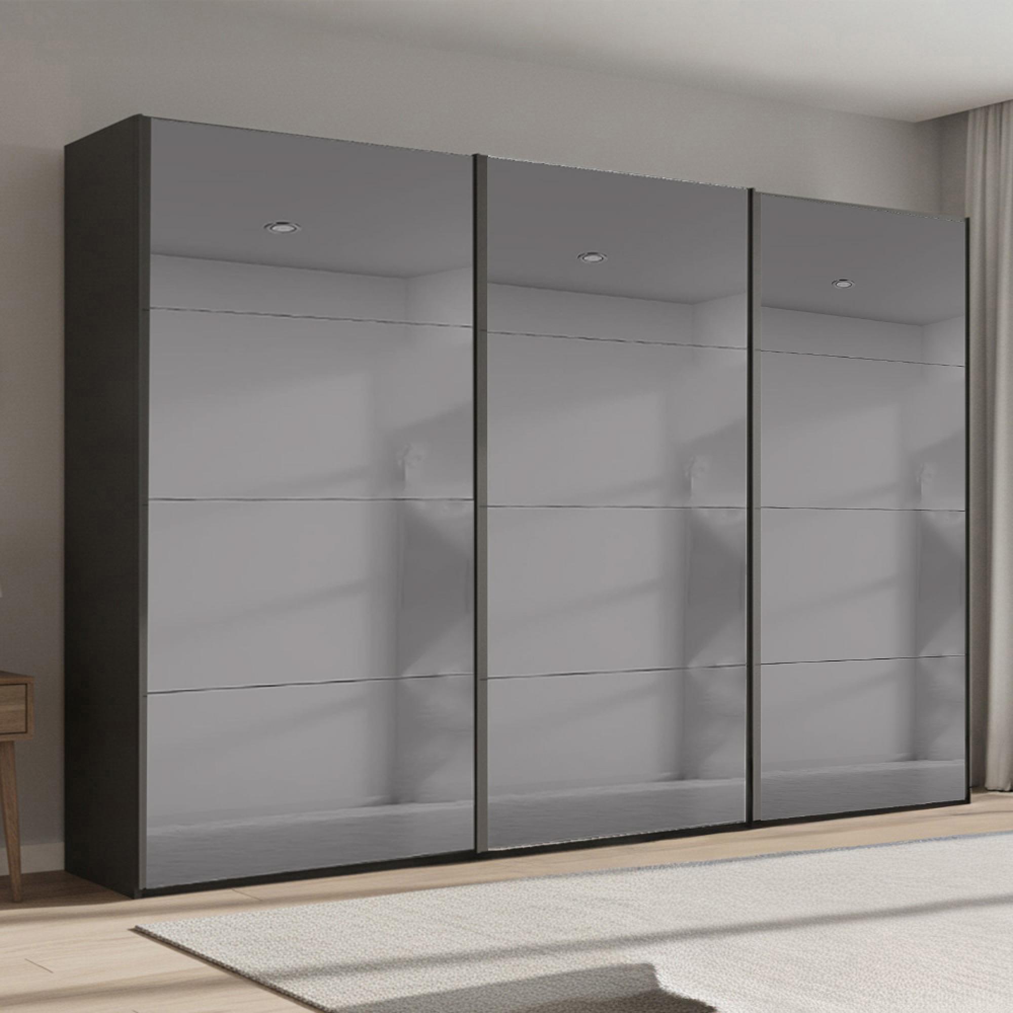 Beluga Extra Sliding Wardrobe - 361cm - 3 Door - Grey Mirrored - Graphite