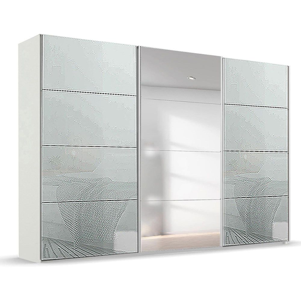 Beluga Extra Sliding Wardrobe - 361cm - 3 Door - Mirror - Alpine White & Silk Grey Glass