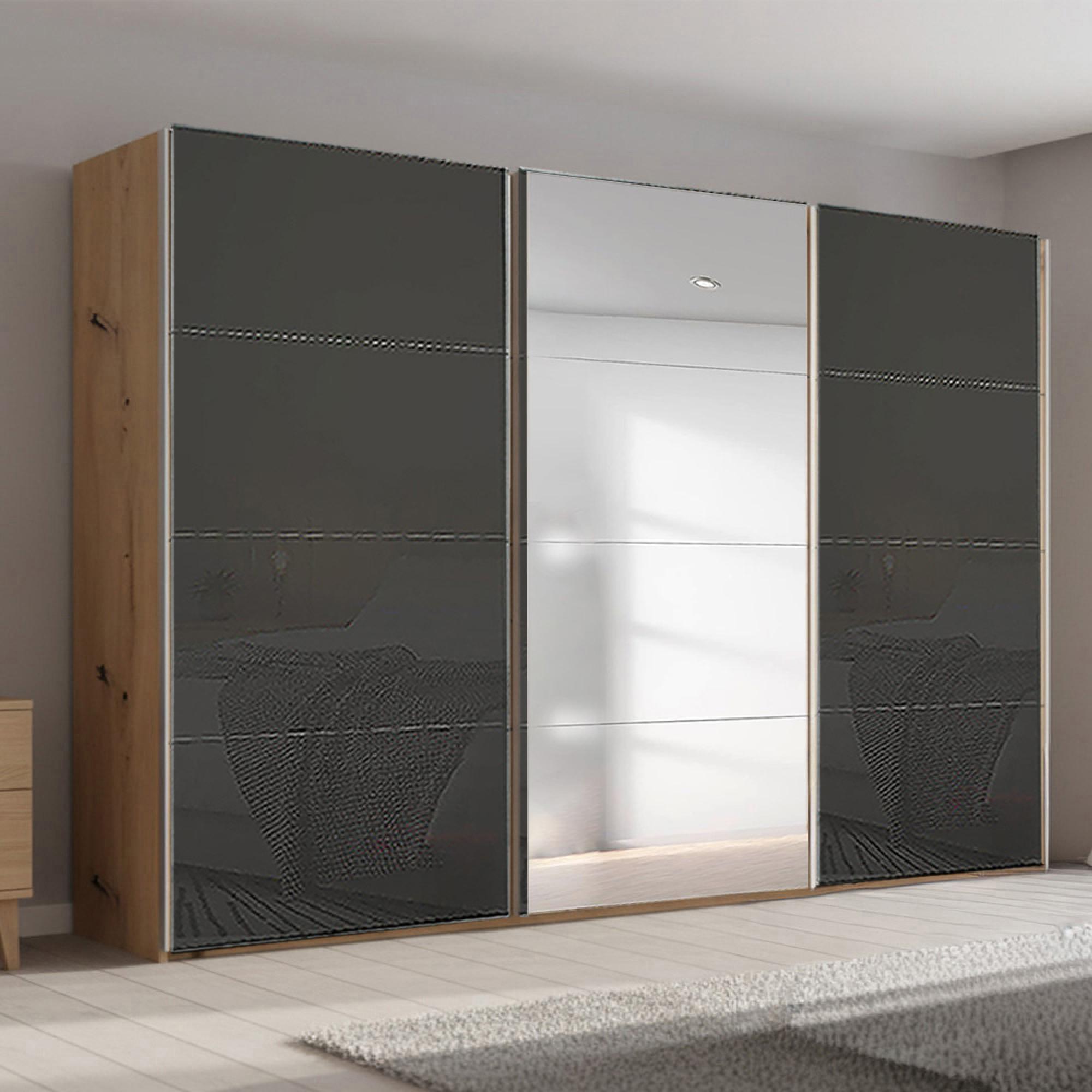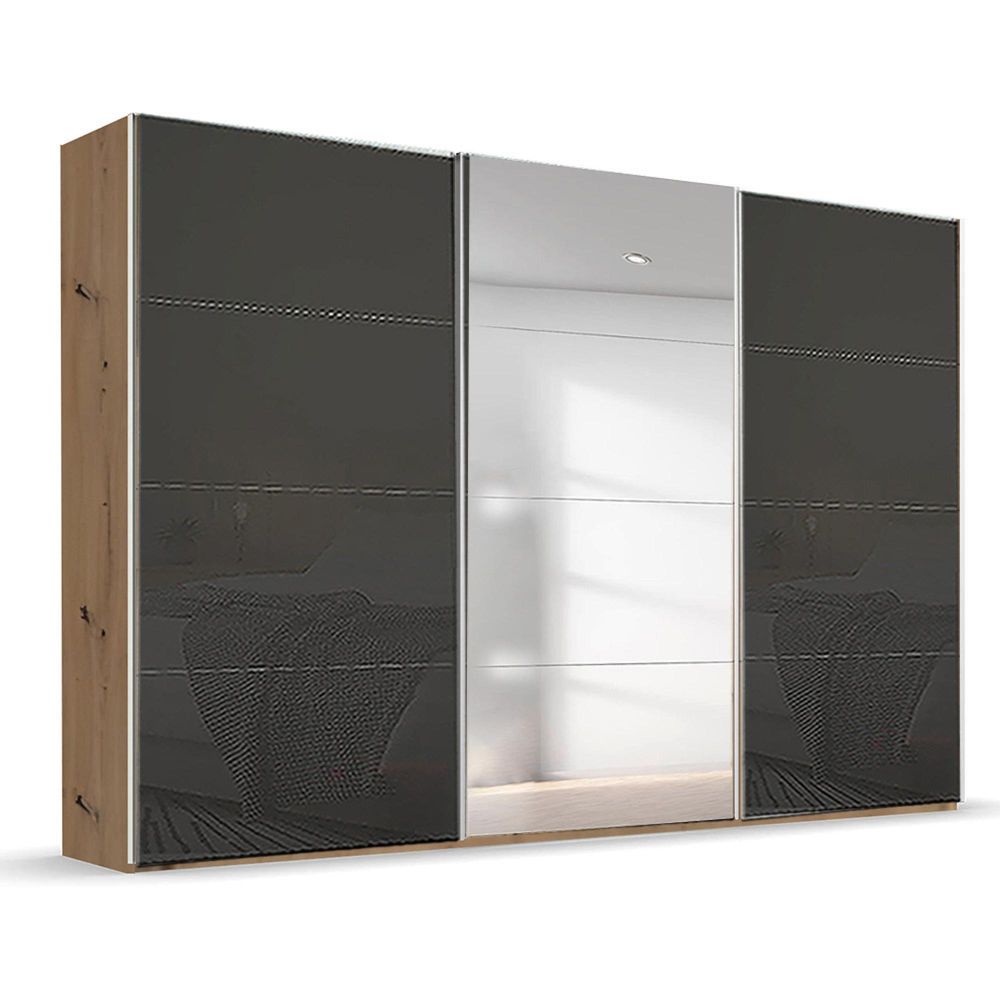Beluga Extra Sliding Wardrobe - 361cm - 3 Door - Mirror - Artisan Oak & Basalt Glass