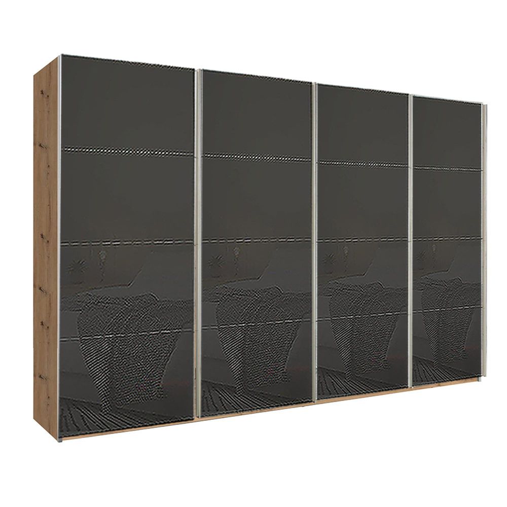 Beluga Extra Sliding Wardrobe - 361cm - 4 Door - Artisan Oak & Basalt Glass