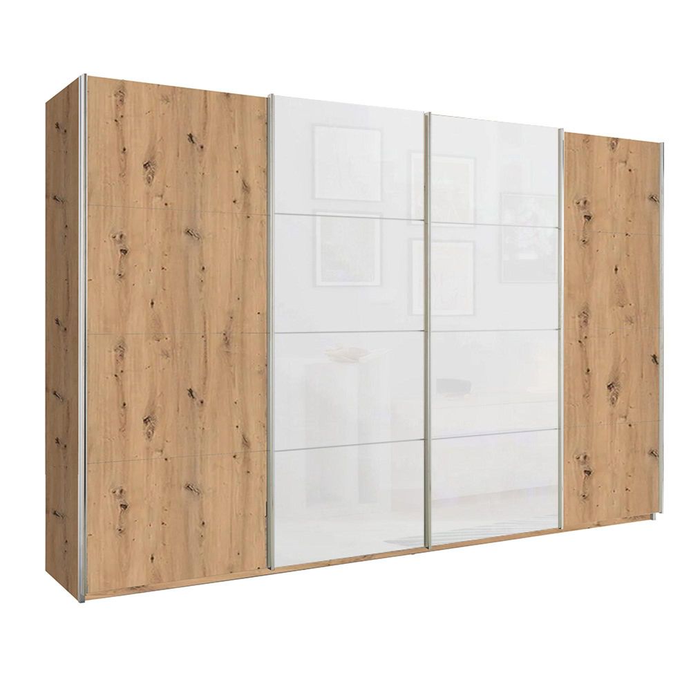 Beluga Extra Sliding Wardrobe - 361cm - 4 Door - Artisan Oak & White Glass Front