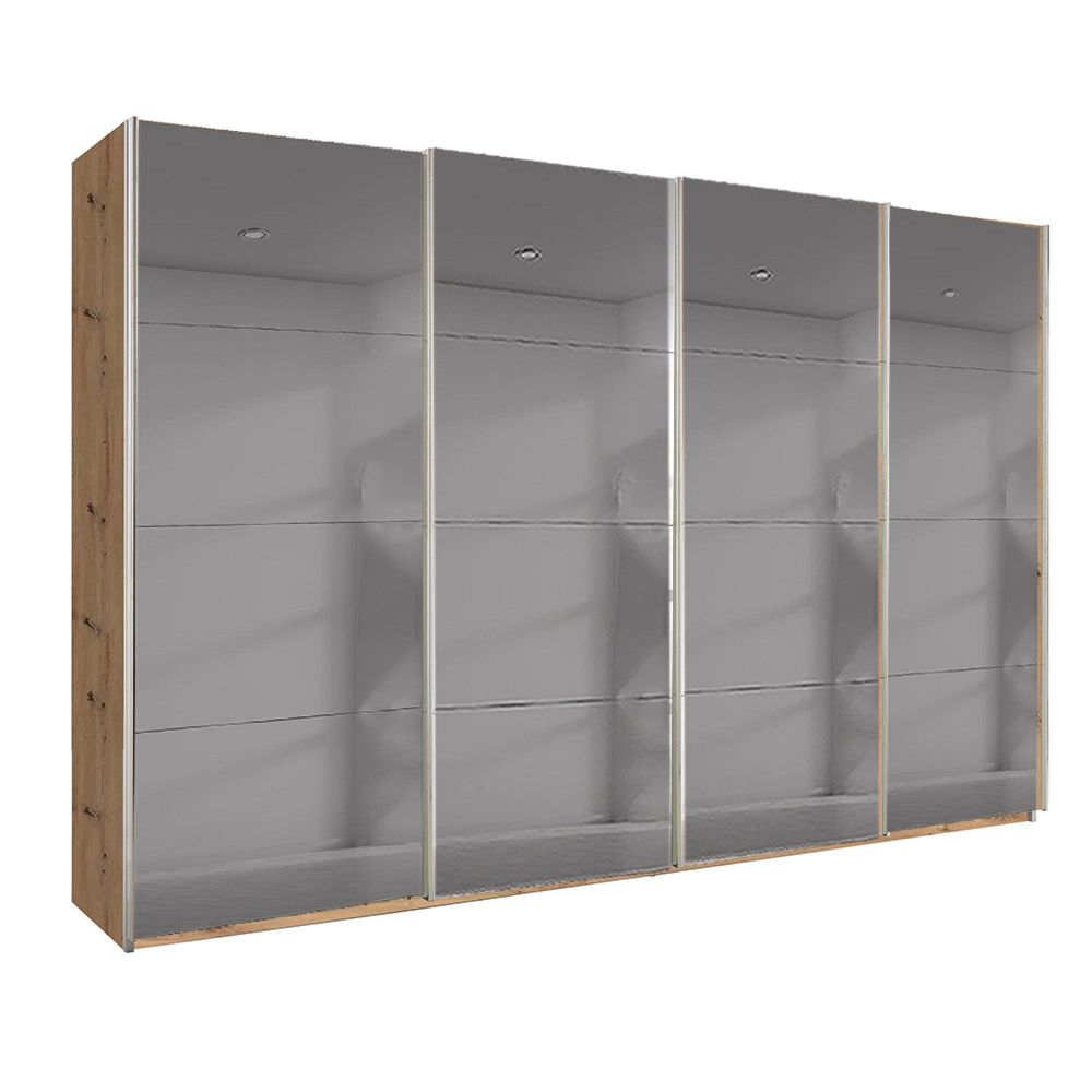 Beluga Extra Sliding Wardrobe - 361cm - 4 Door - Grey Mirrored - Artisan Oak