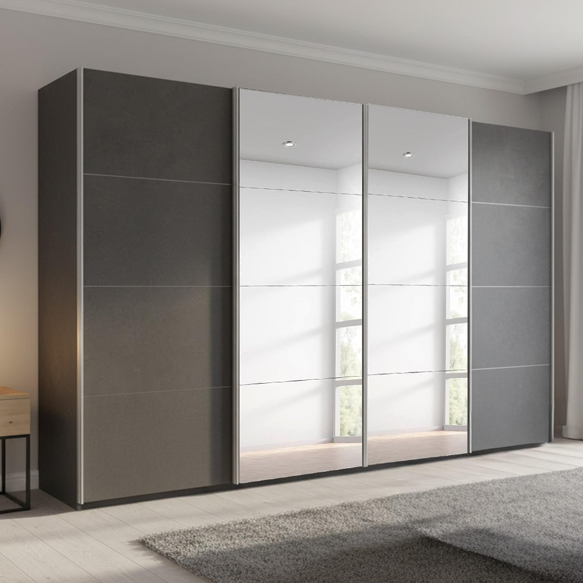 Beluga Extra Sliding Wardrobe - 361cm - 4 Door - Mirror - Graphite