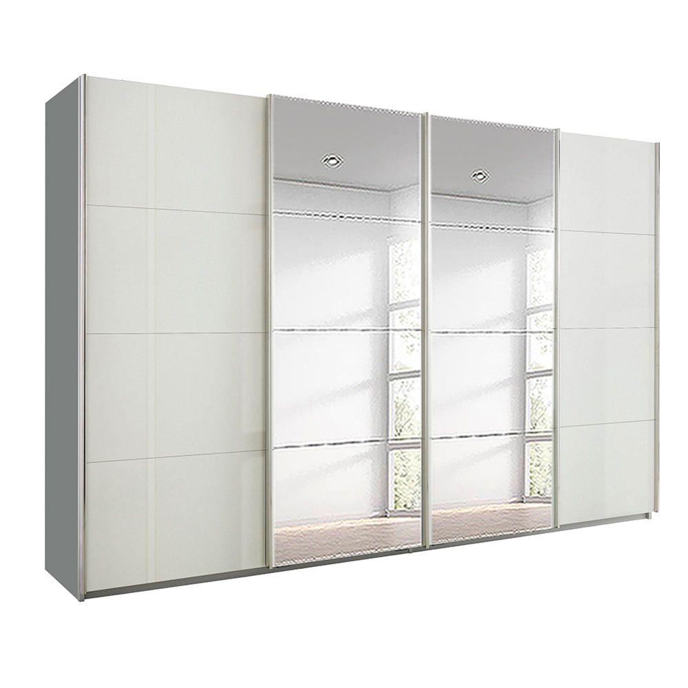 Beluga Extra Sliding Wardrobe - 361cm - 4 Door - Mirror - Silk Grey & White High Gloss