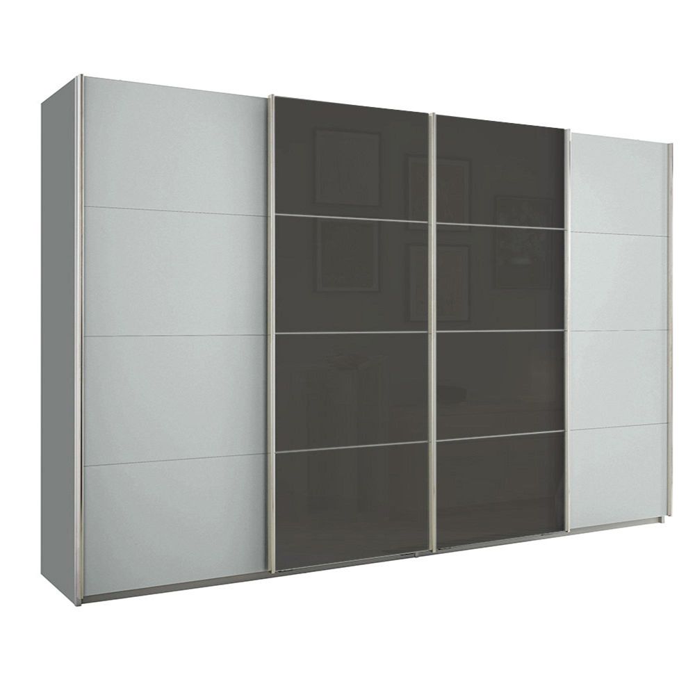Beluga Extra Sliding Wardrobe - 361cm - 4 Door - Silk Grey & Basalt Glass Front