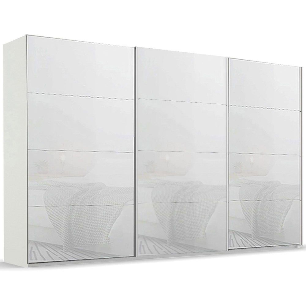 Beluga Extra Sliding Wardrobe - 406cm - 3 Door - Alpine White & White Glass