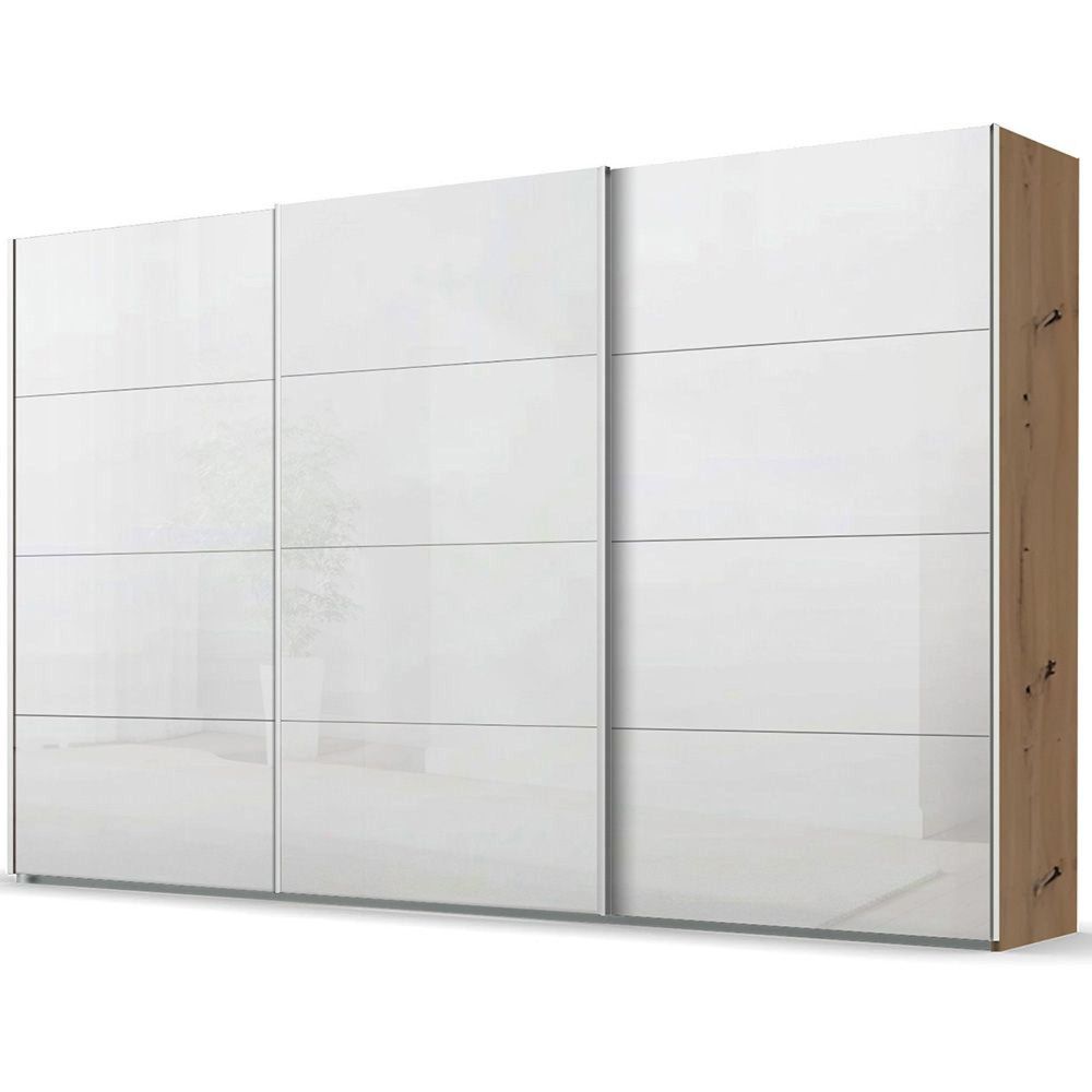 Beluga Extra Sliding Wardrobe - 406cm - 3 Door - Artisan Oak & White High Gloss