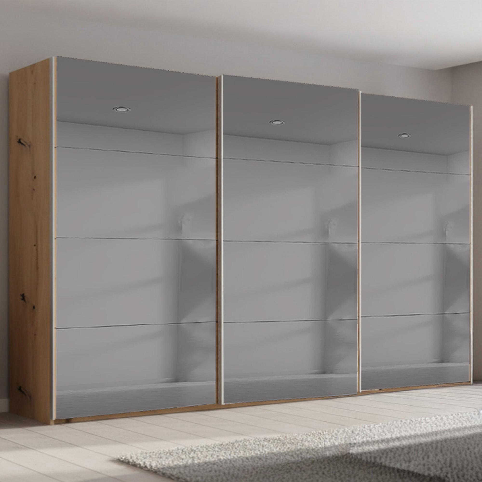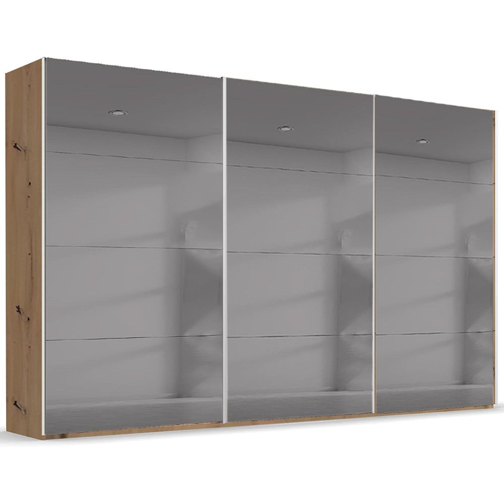 Beluga Extra Sliding Wardrobe - 406cm - 3 Door - Grey Mirrored - Artisan Oak