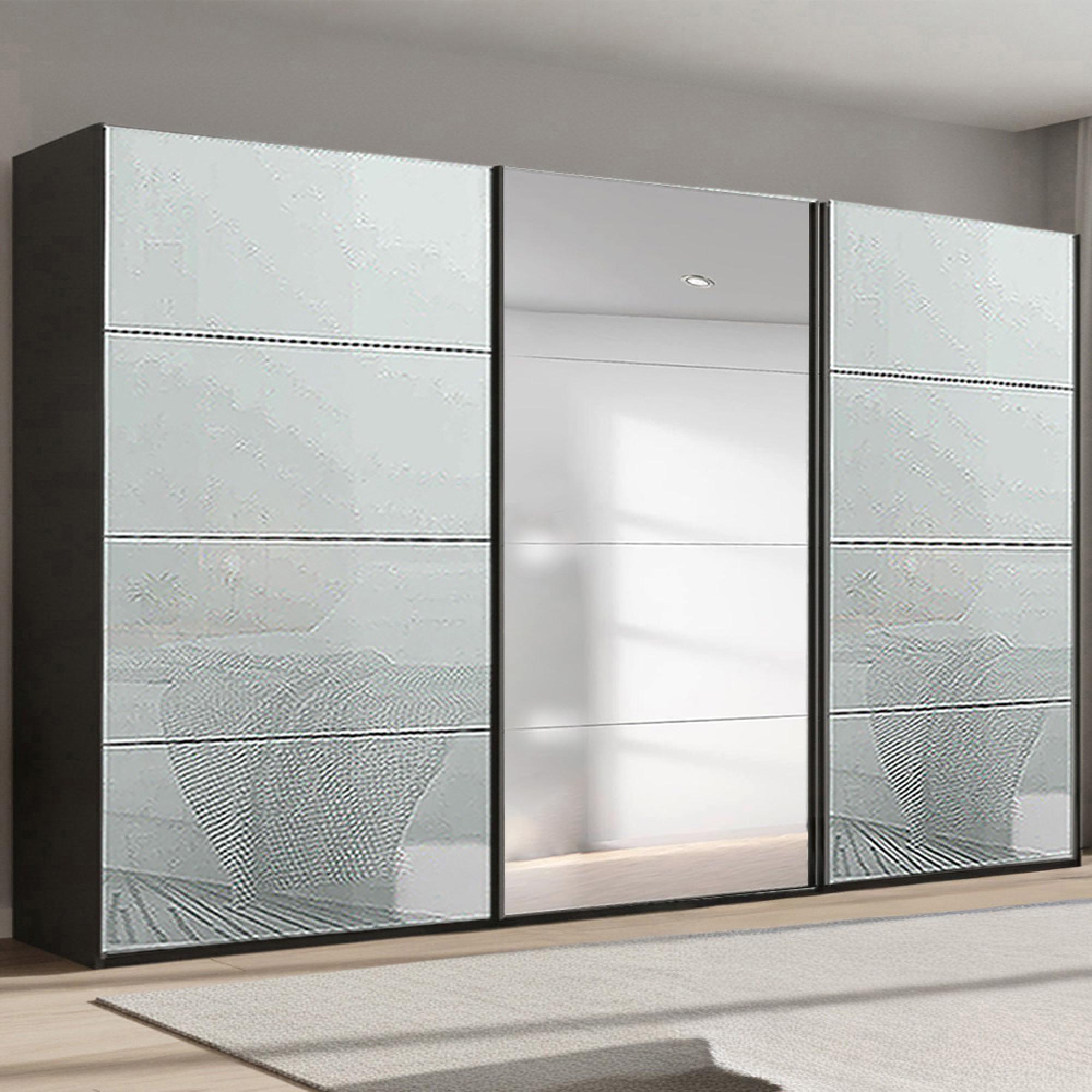 Beluga Extra Sliding Wardrobe - 406cm - 3 Door - Mirror - Graphite & Silk Grey Glass
