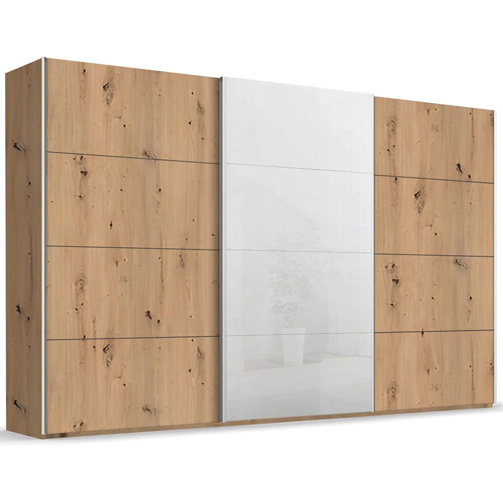 Beluga Extra Sliding Wardrobe - 406cm - 3 Door - White High Gloss & Artisan Oak Front