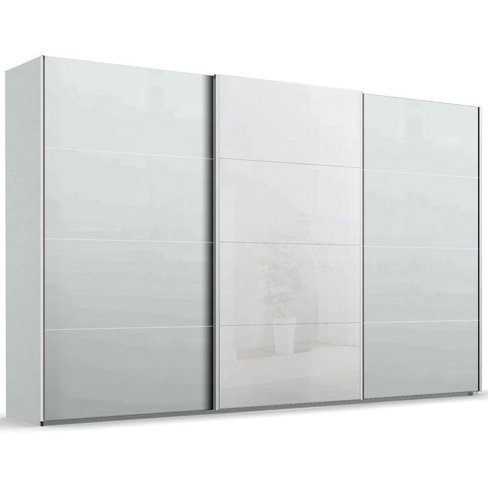 Beluga Extra Sliding Wardrobe - 406cm - 3 Door - White High Gloss & Silk Grey Front