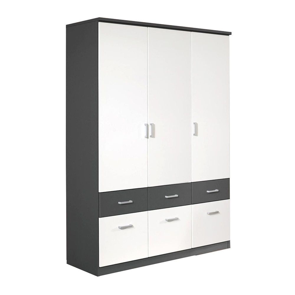 Celle Super Wardrobe - 136cm - 3 Door - 6 Drawer - Metallic Dark Grey & Alpine White