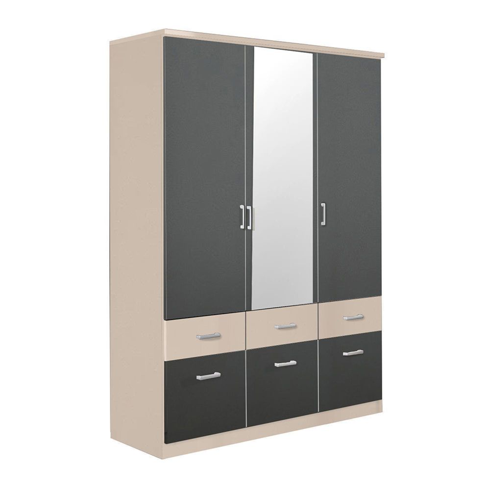 Celle Super Wardrobe - 136cm - 3 Door - Combi - Champagne & Metallic Dark Grey