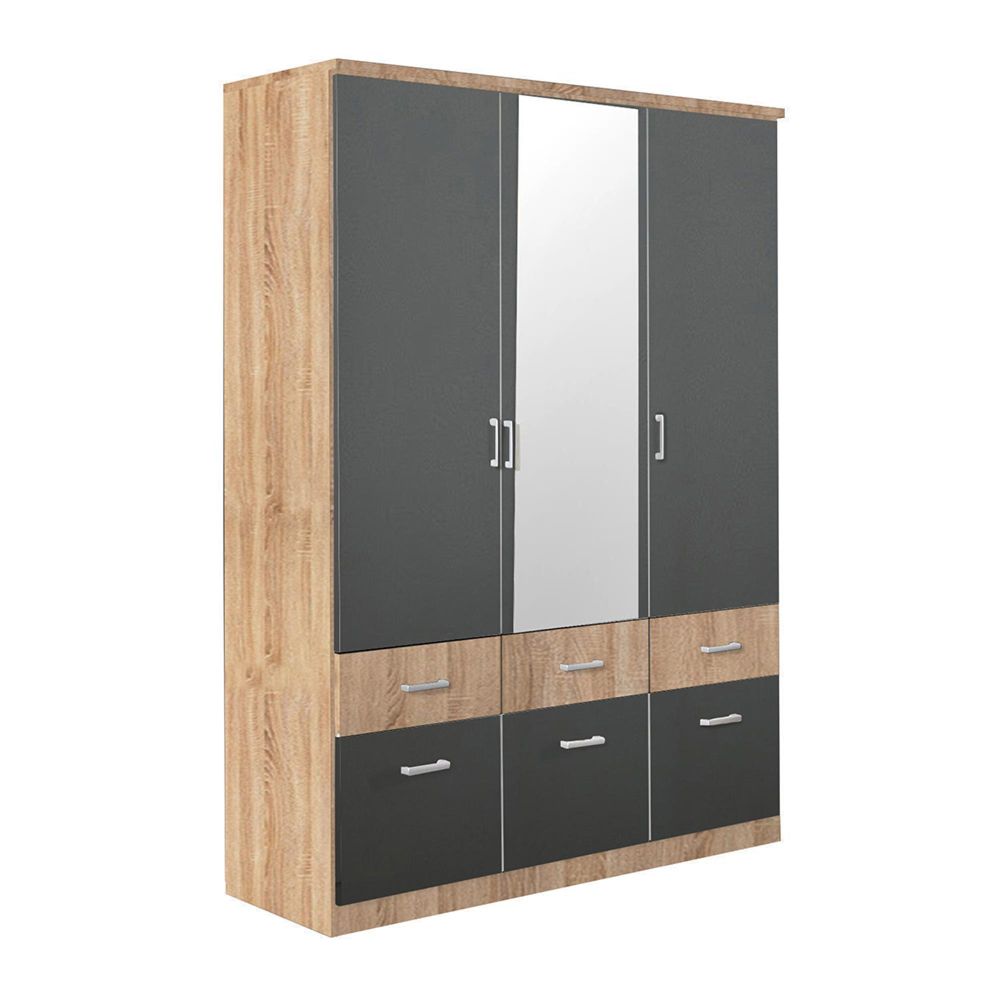 Celle Super Wardrobe - 136cm - 3 Door - Combi - Sonoma Oak & Metallic Dark Grey
