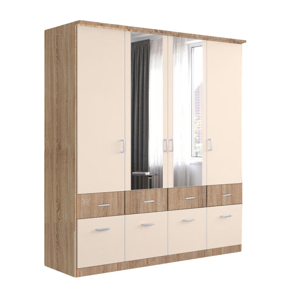 Celle Super Wardrobe - 181cm - 4 Door - Combi - Sonoma Oak & Champagne