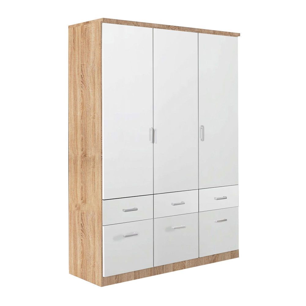 Celle Wardrobe - 136cm - 3 Door - 6 Drawer - Sonoma Oak & Alpine White