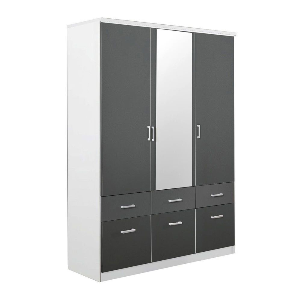 Celle Wardrobe - 136cm - 3 Door - Combi - Alpine White & Metallic Dark Grey