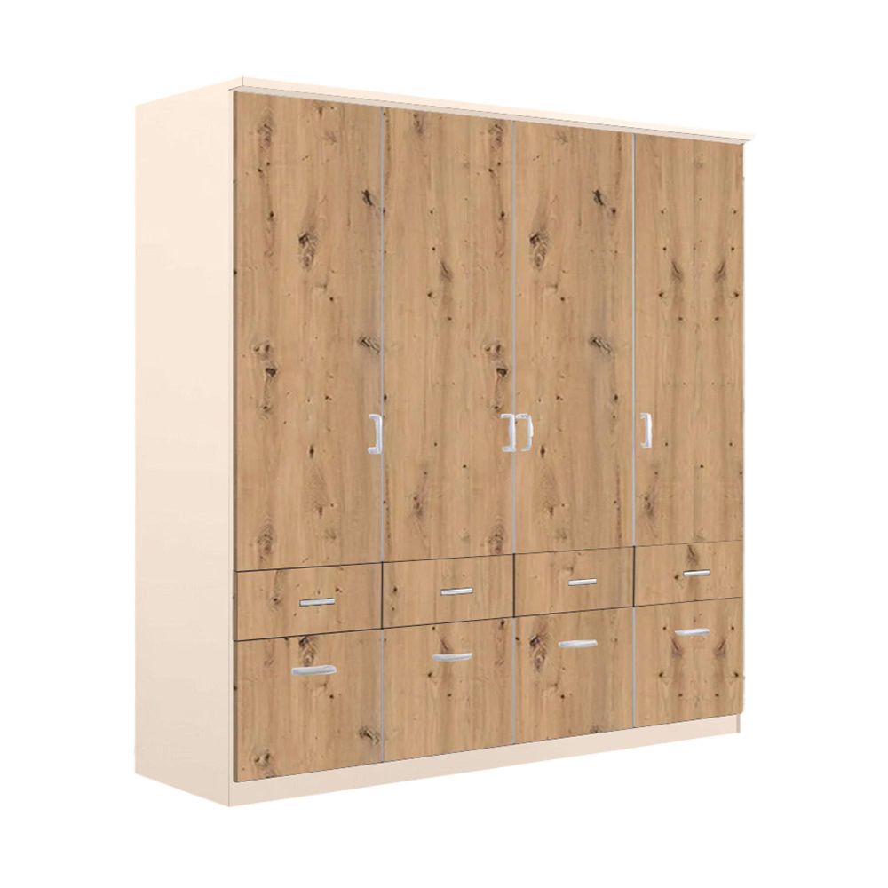 Celle Wardrobe - 181cm - 4 Door - with Drawer - Champagne & Artisan Oak