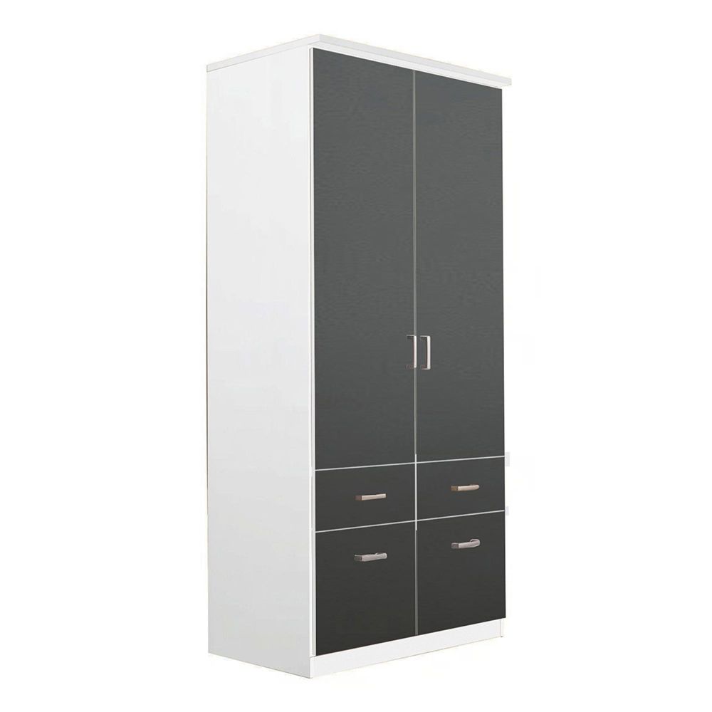 Celle Wardrobe - 91cm - 2 Door - Alpine White & Metallic Dark Grey - 4 Drawer & Extras