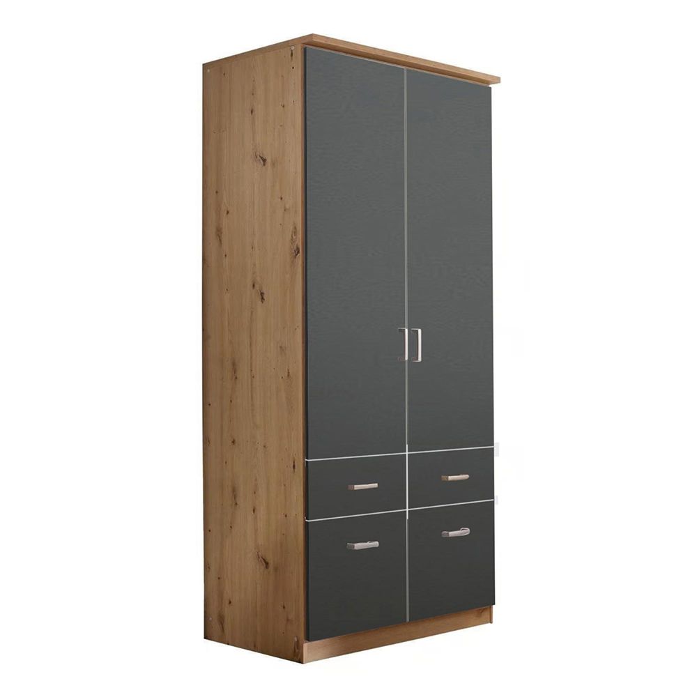 Celle Wardrobe - 91cm - 2 Door - Artisan Oak & Metallic Dark Grey - 4 Drawer
