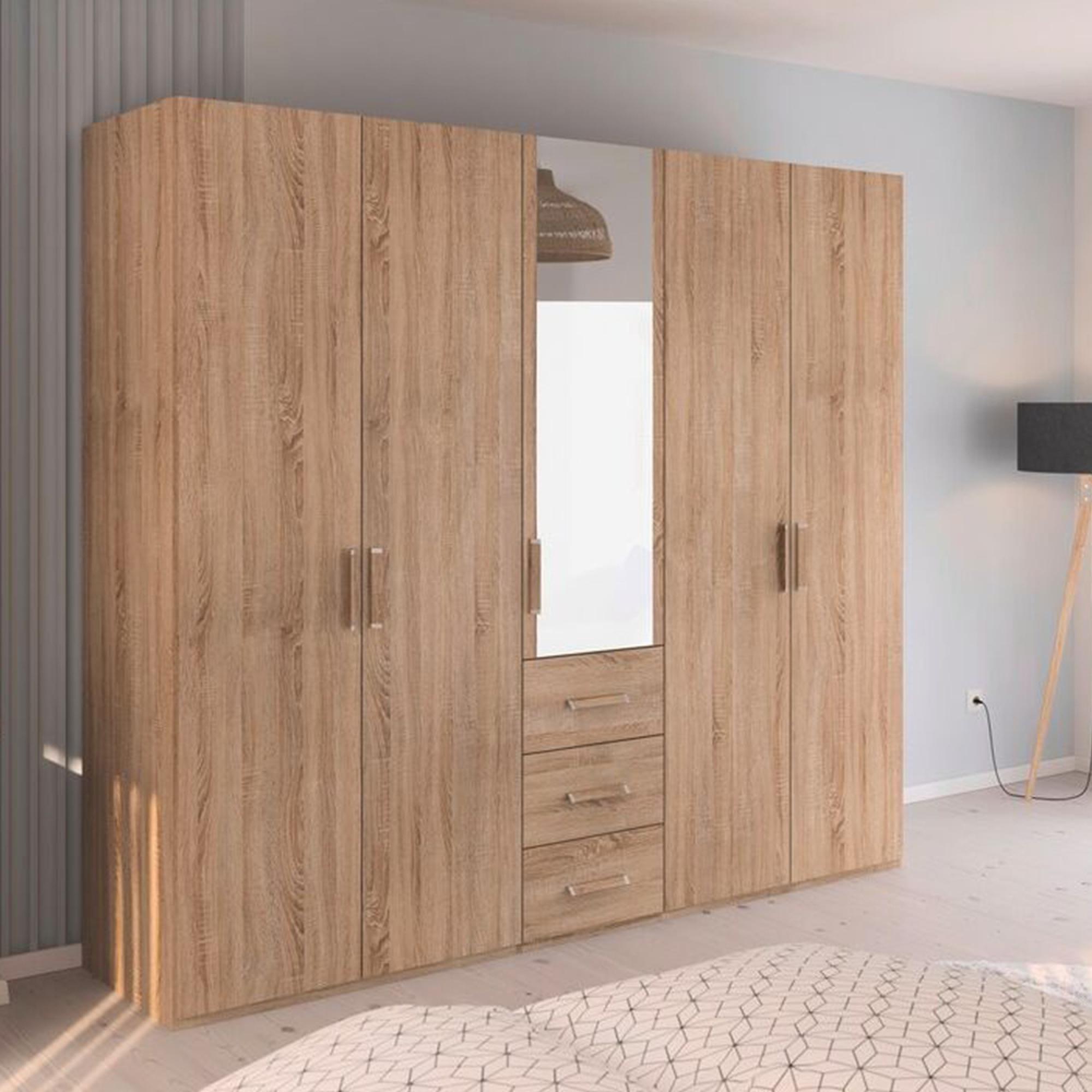 Evelyn Wardrobe - 251cm - 5 Door - Combi - H 223cm - Sonoma Oak