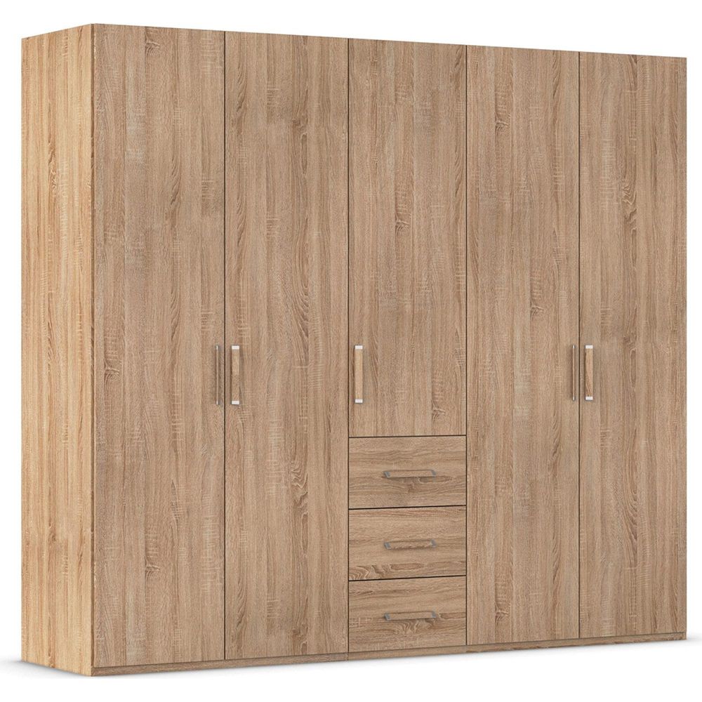 Evelyn Wardrobe - 251cm - 5 Door - H 223cm - with Drawer - Sonoma Oak