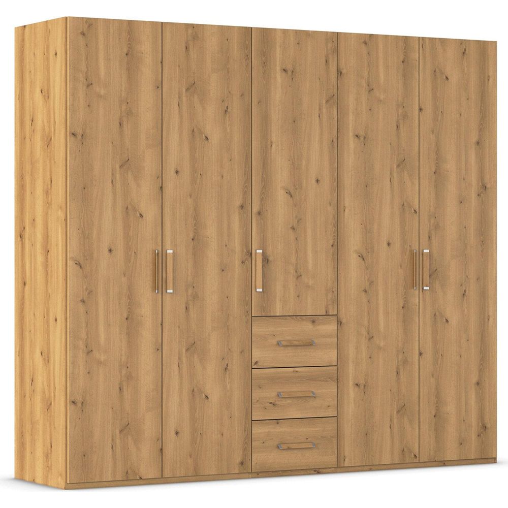 Evelyn Wardrobe - 251cm - 5 Door - H 223cm - with Drawer - Wild Oak