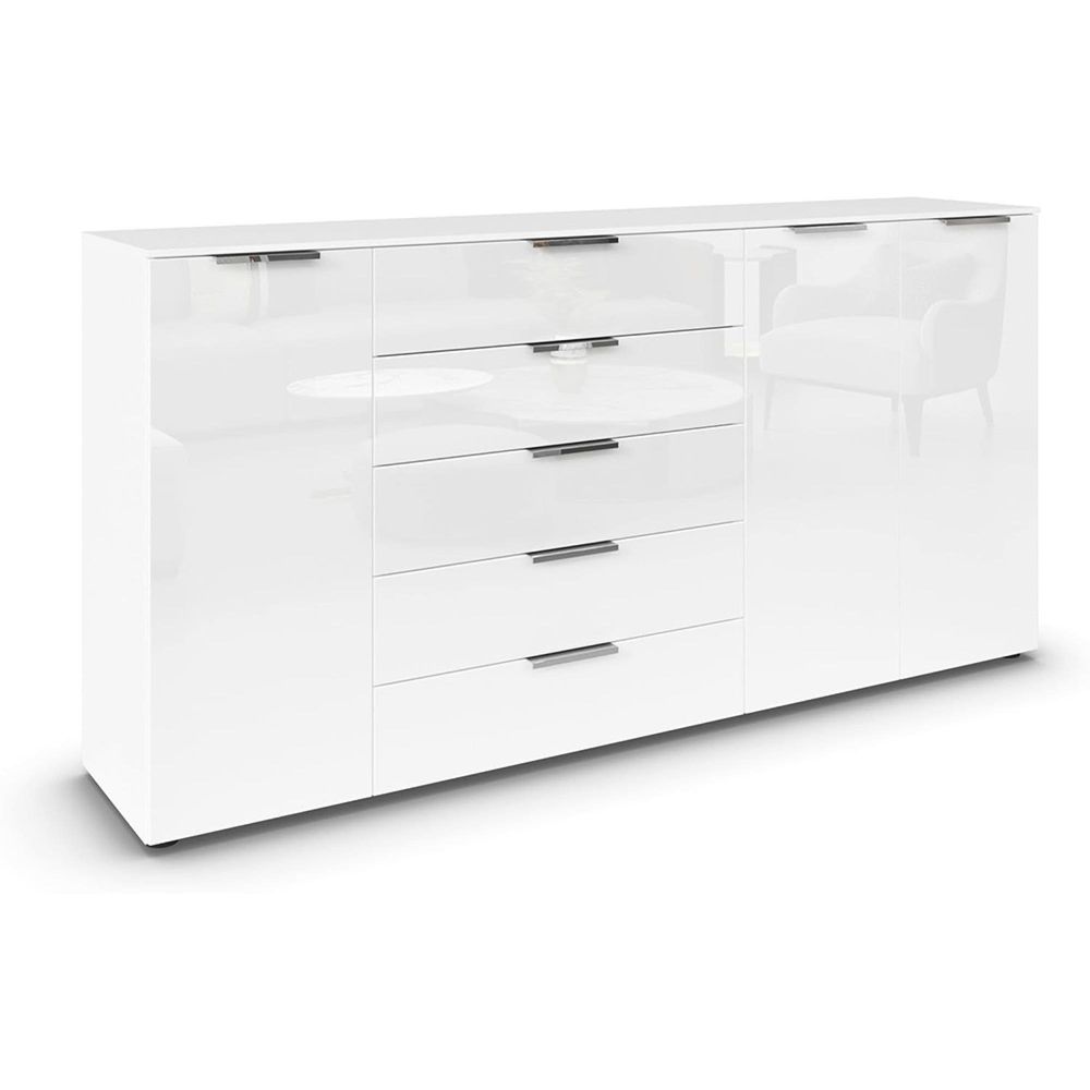 Flipp Sideboard - 199cm - 3 Door - Adjustable Height - Alpine White & White Glass