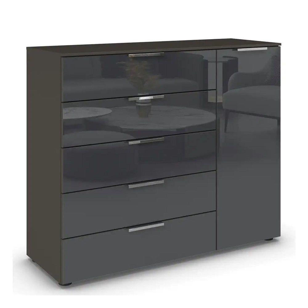 Flipp Small Sideboard - 120cm - 1 Door - Adjustable Height - Graphite & Basalt Glass