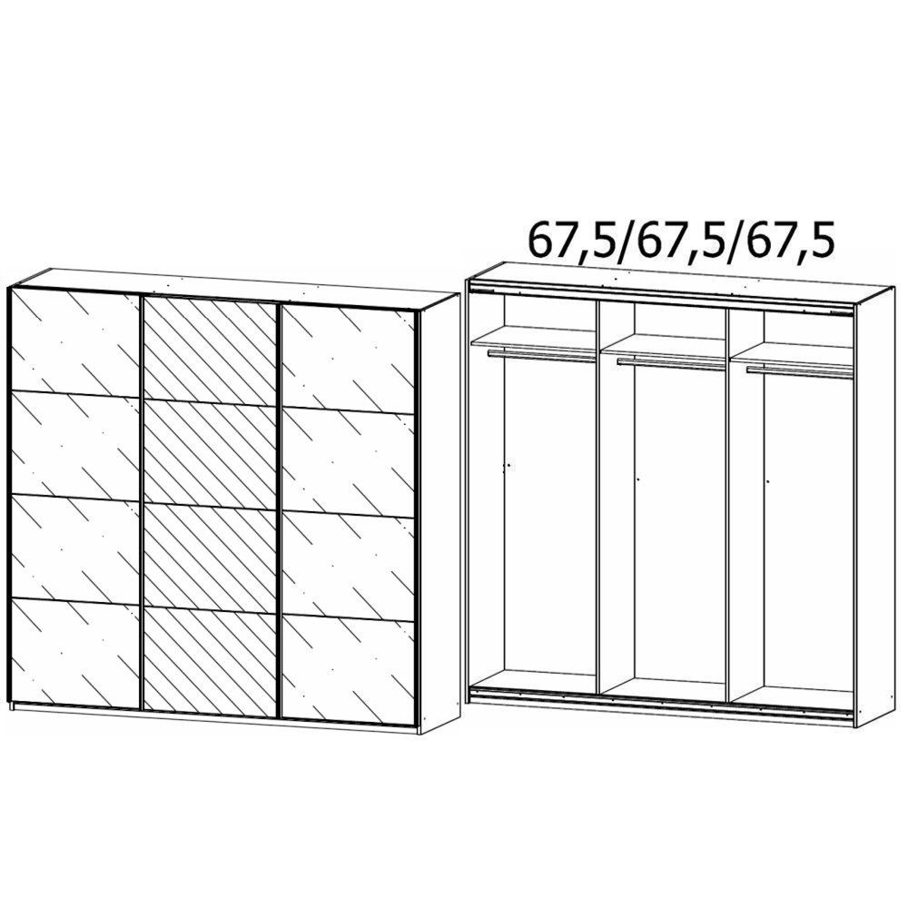 Kulmbach Sliding Mirror Wardrobe - 203cm - 3 Door - Metallic Dark Grey & White Glass