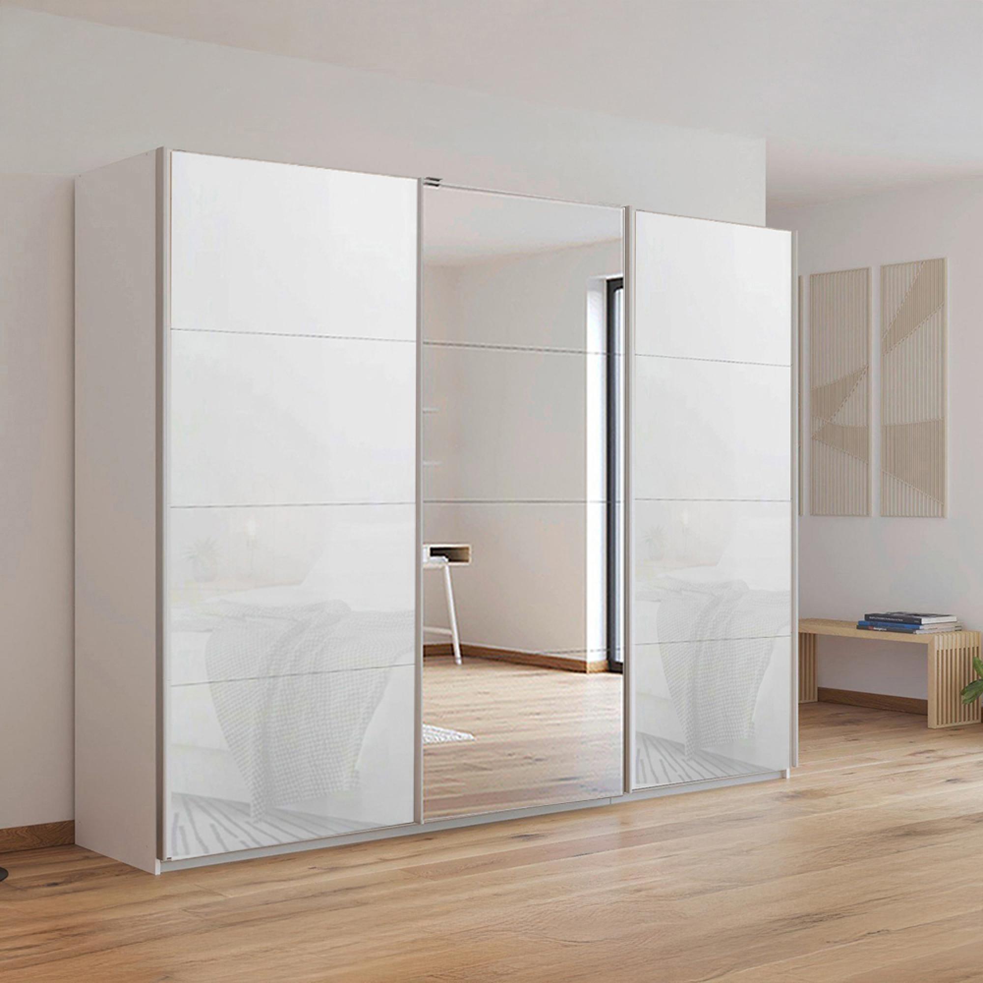 Kulmbach Sliding Mirror Wardrobe - 271cm - 3 Door - Alpine White & White Glass