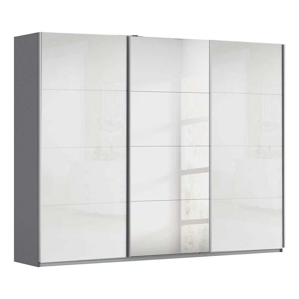 Kulmbach Sliding Mirror Wardrobe - 271cm - 3 Door - Metallic Dark Grey & White High Gloss