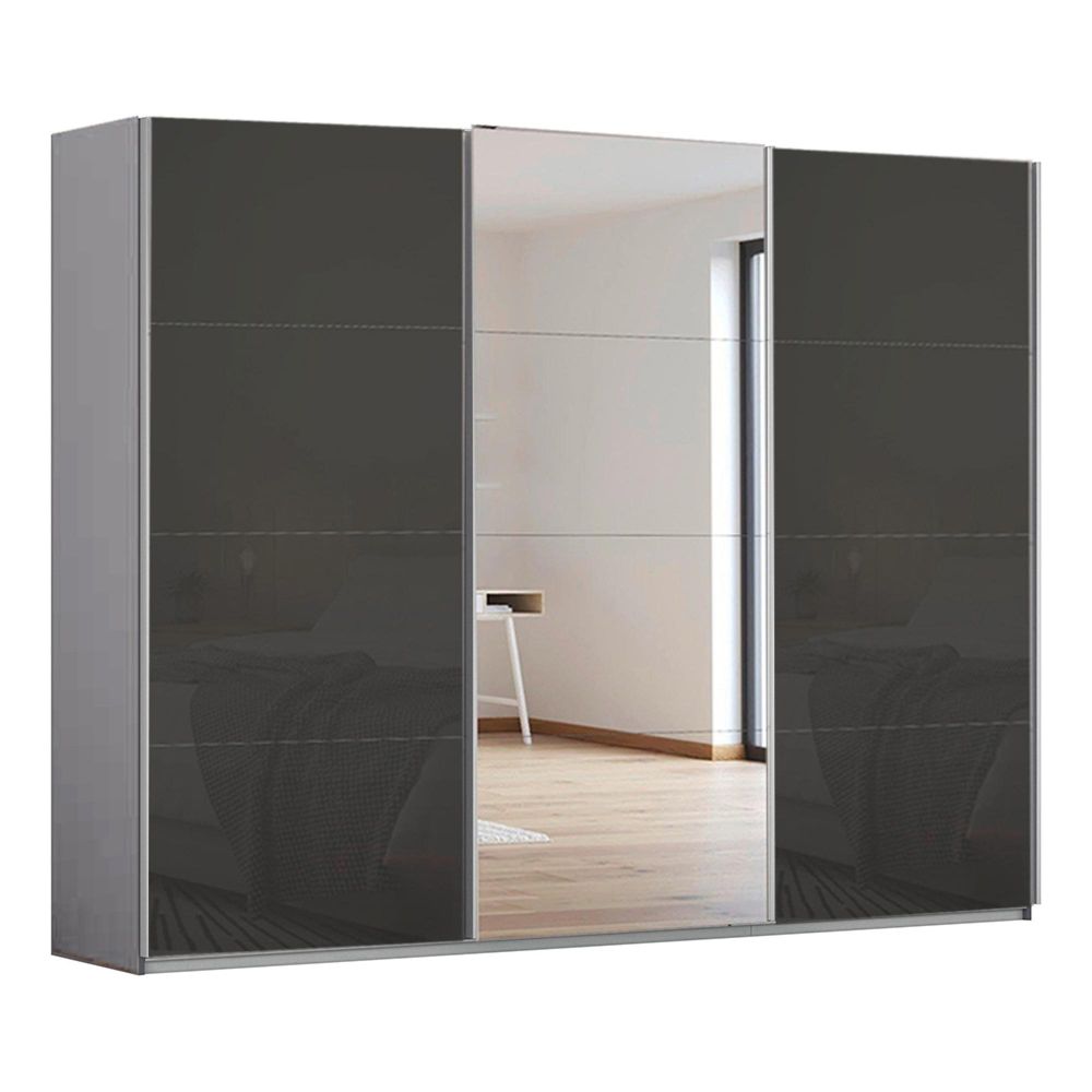 Kulmbach Sliding Mirror Wardrobe - 271cm - 3 Door - Silk Grey & Basalt Glass