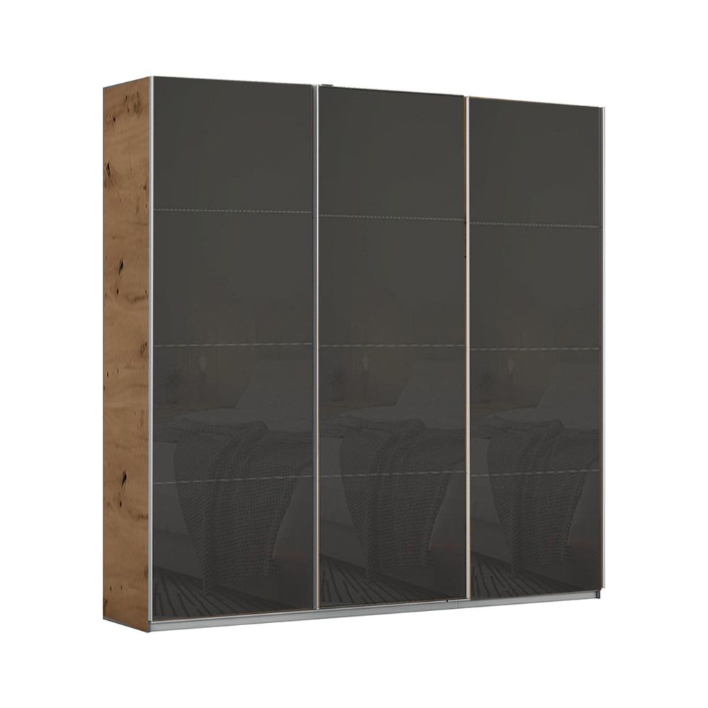 Kulmbach Sliding Wardrobe - 203cm - 3 Door - Artisan Oak & Basalt Glass