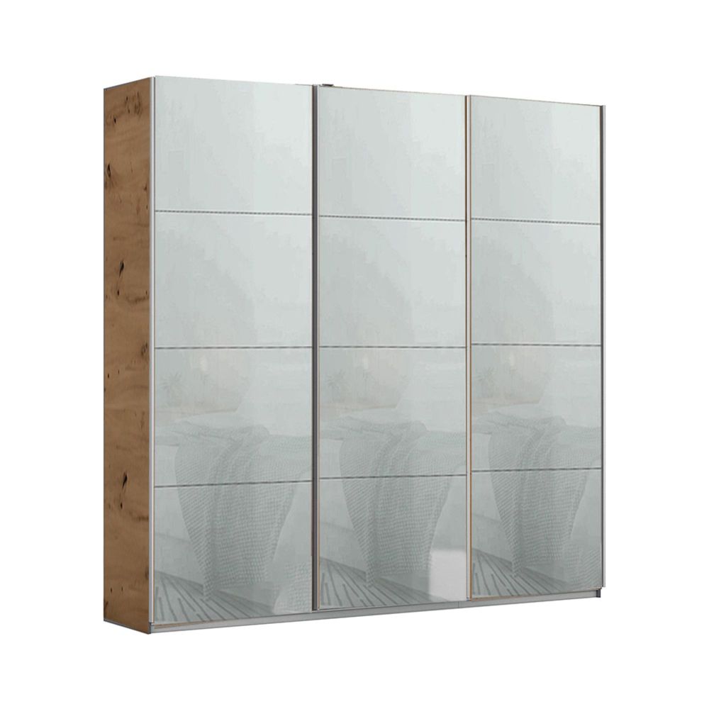 Kulmbach Sliding Wardrobe - 203cm - 3 Door - Artisan Oak & Silk Grey Glass
